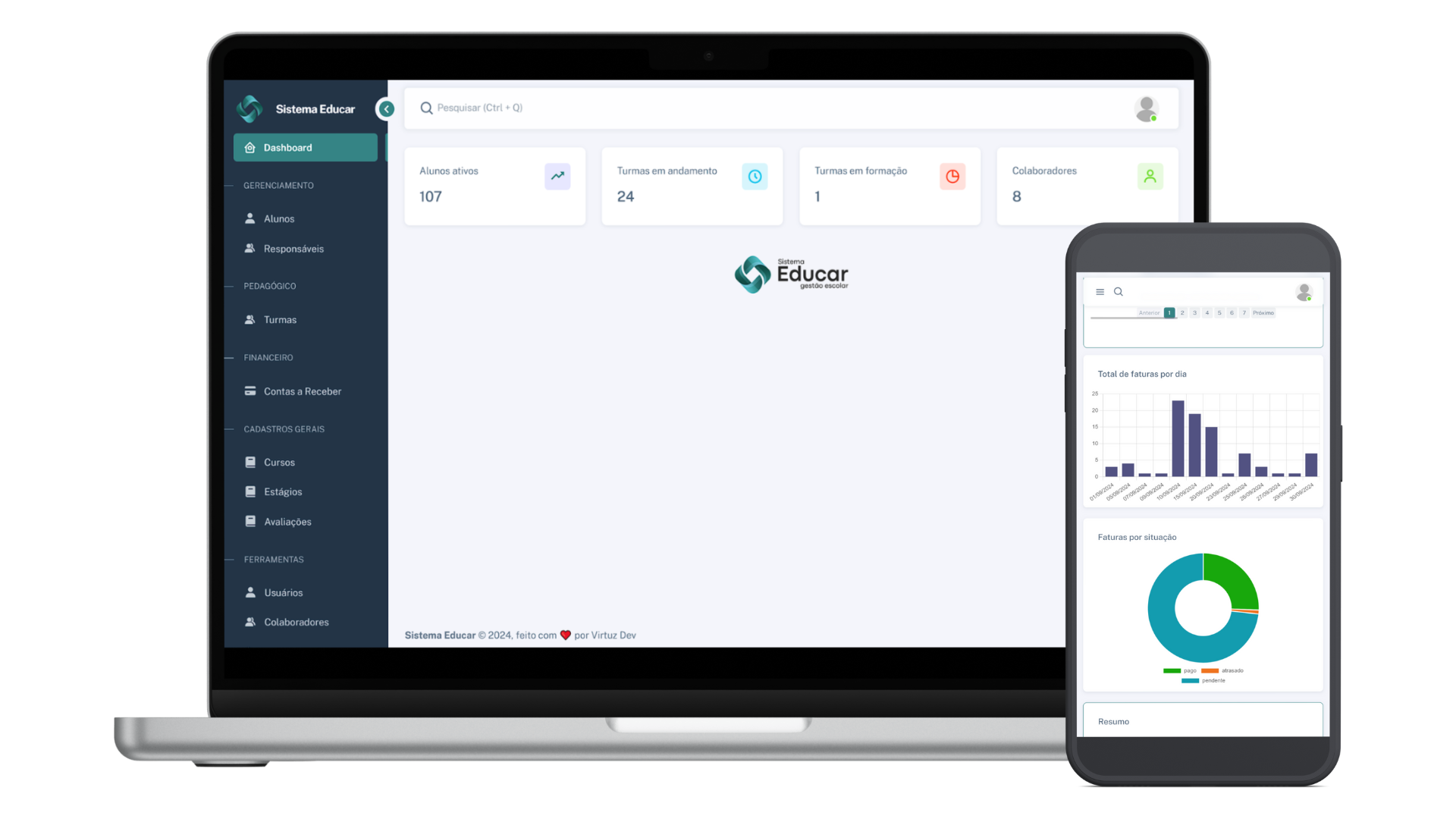 O Sistema Educar é ideal para quem busca uma gestão profissional de alunos, seja você um professor autônomo, responsável por cursos livres, ensino básico, técnico ou simplesmente precisa gerenciar alunos e o financeiro de forma eficiente.